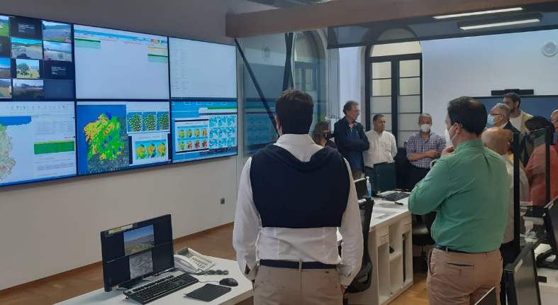 El Centro de Coordinación Central de Defensa Contra Incendios Forestales recibió la visita del coronel jefe del Aeródromo Militar de Santiago, Pedro Díaz, quien conoció la labor de la estructura de la mano del director general de Defensa del Monte, Manuel Rodríguez. Se trata del puesto de mando central desde lo cual se dirigen y coordinan las acciones de defensa contra los fuegos para todo el territorio gallego. Desde este centro se pueden desplegar de manera óptima las nuevas fuentes de información provenientes de las cámaras de la Red de Vigilancia de Espacios Forestales y del vídeo en tiempo real de las aeronaves y bases aéreas, así como la ampliación y mejora de información de observación y predicción meteorológica, entre otras utilidades. La Red de videovigilancia forestal contará este año con un total de 148 cámaras en 74 localizaciones. Estas cámaras, cuentan con una tecnología de última generación, especialmente diseñada para exteriores y vigilancia forestal, con zoom remoto, movimiento horizontal y vertical, rotación en los 360º automática y bajo demanda, visión panorámica y altas capacidades de grabación, pudiendo incluso identificar el número de las matrículas de los automóviles que estén circulando por el monte.