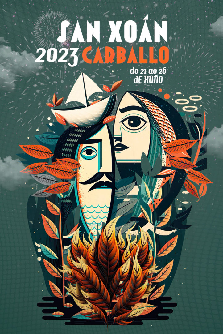 Licenciado en Ciencias de la Información, en la especialidad de Publicidad y Relaciones Públicas, Sergio Iborra, natural de Xátiva, se convierte en ganador del concurso con una propuesta innovadora pero fiel a la tradición, que recoge los principales símbolos de nuestra fiesta. El fuego, las sardinas, la magia de la noche meiga y mismo los barcos de papel que bajan cada año por el río Anllóns en la Fiesta del Bosque forman parte del cartel.