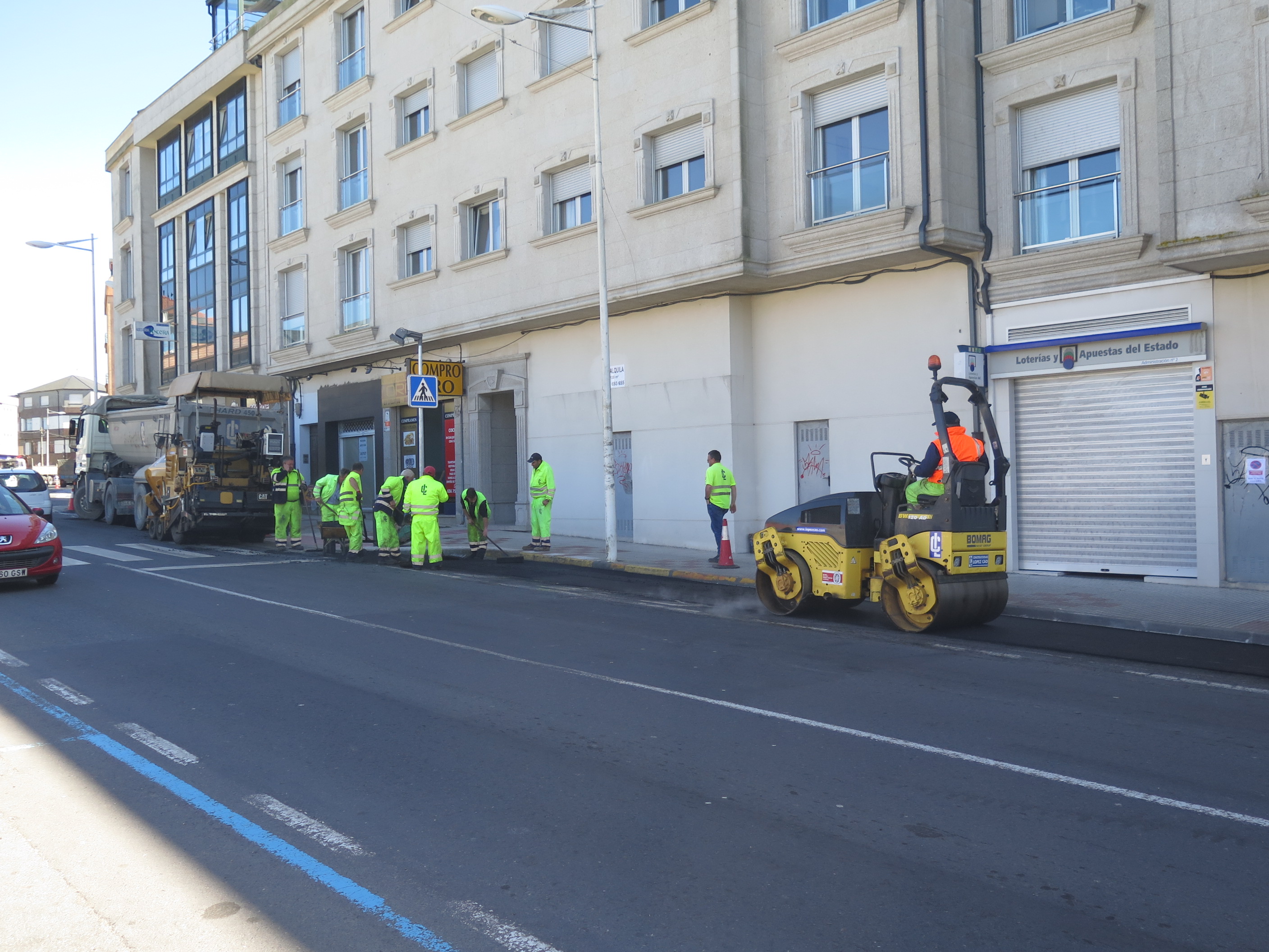 As obras dirixidas a mellorar a seguridade viaria na Avenida Fisterra da Laracha avanzan a bo ritmo. Nesta semana os traballos estanse desenvolvendo simultaneamente en dous puntos de actuación. Un deles é nas inmediacións da Praza do Concello, onde se está a completar a pavimentación dos espazos reservados para o aparcamento gratuíto de vehículos para, posteriormente, proceder ao remarcado da zona azul.