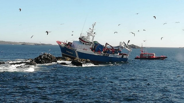 Un arrastrero de Ribeira con ocho tripulantes a bordo encalló este lunes frente al litoral de Aguiño, en la zona conocida como el Serriño. El Boteira Primero regresaba de faenar cuándo sufrió un problema con el timón que lo hizo varar arriba de unas rocas. Ninguno de los marineros que iban a bordo sufrieron daños. Hasta el lugar se desplazaron la lancha Salvamar Sargadelos, la de la cofradía de Aguiño y tres arrastreros de Ribeira. Finalmente, el barco desencallou sin ayuda y continuó su rumbo a puerto.