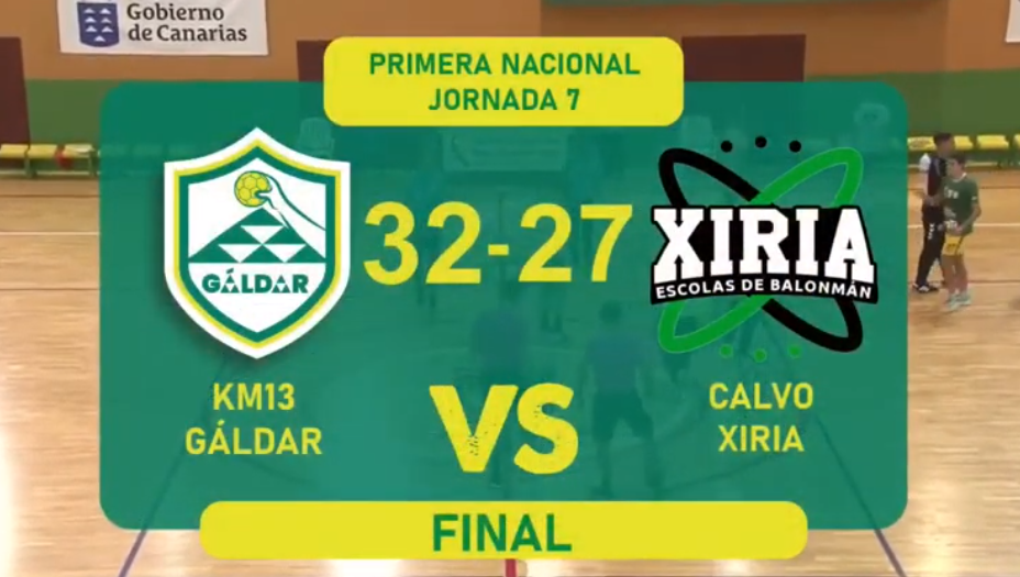 Disputábase a xornada 7 en Primeira Nacional, a cita estaba servida ás 21:00 horas, hora local, no polideportivo Juan Vega Mateos, nas Palmas. O conxunto carballés medíase en Canarias ao Km13 Balonmán Gáldar. O equipo local comezou anotando no primeiro minuto e marcou a superioridade cun parcial de ata cinco goles no primeiros oito minutos, pero non se descolgou o conxunto que dirixe Adrián Dubra, boas intervencións en ataque de Cancela, Chimpo e Castiñeiras. O empate chegou ao descanso sobre a bucina de man de Figueiras, 16-16.