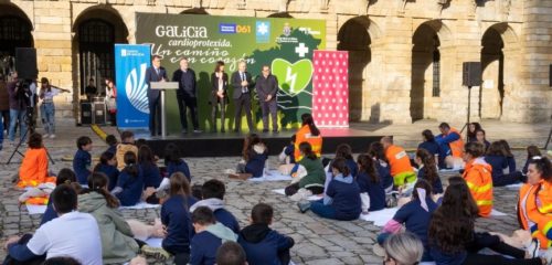 O conselleiro de Cultura, Educación, FP e Universidades, Román Rodríguez, asistiu esta mañá á xornada formativa para escolares co gallo do Día Europeo de Concienciación ante o Paro Cardíaco, onde salientou a importancia de integrar a formación de autoprotección e, en concreto, en RCP, “dado que a primeira resposta é moi importante. O que hoxe aprendedes como un xogo mañá pode salvar una vida”. Celebrada na praza do Obradoiro, a actividade consiste nun adestramento masivo para máis de medio millar de alumnos galegos sobre reanimación cardiopulmonar, organizada pola Xunta e o Colexio de Médicos da Coruña.