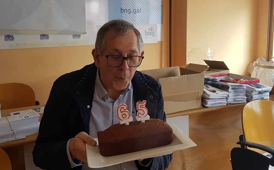 Evencio Ferrero Rodríguez, maestro y político carballés, acumula a sus espaldas más de 40 años de vida política, donde actualmente es alcalde de la localidad desde el año 2003. Este domingo estuvo al pie del cañón con sus compañeros y compañeras de corporación, apoyando a los candidatos Xoán Manoel Sande y Daniel Pérez, en la feria de Carballo por tres razones muy importantes, pidiendo el voto para el partido de su vida, el BNG, conmemorando y visibilizando el día de la libertad y la diversidad sexual, y celebrando su 65 cumpleaños.
