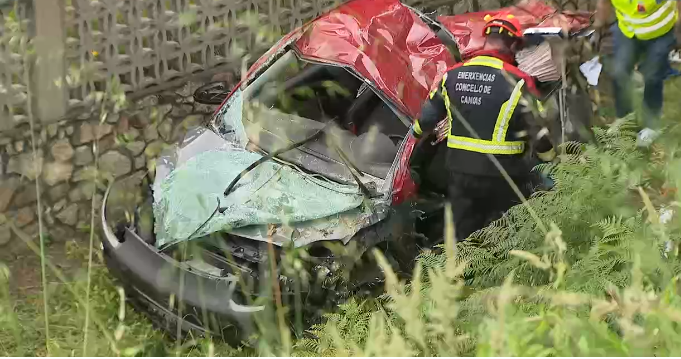 O sinistro aconteceu na estrada provincial que volve cara a Cangas dende Cabo Home, á altura da parroquia do Hío. Varios ciclistas atoparon este domingo o coche accidentado no medio do monte co seu condutor falecido e o acompañante semi-incosciente. Os Bombeiros do Morrazo e o equipo municipal de Emerxencias de Cangas traballaron arreo para poder sacar dos ferros ao acompañante do condutor, que estaba con vida. Foi trasladado nunha ambulancia medicalizada ao hospital Álvaro Cunqueiro de Vigo, cidade de onde eran ambos, pero veraneaban coas súas familias en Cangas. Investigan se o sinistro se puido producir por un exceso de velocidade nunha zona de curvas pronunciadas. O coche caeu por un terraplén de máis de tres metros de altura.