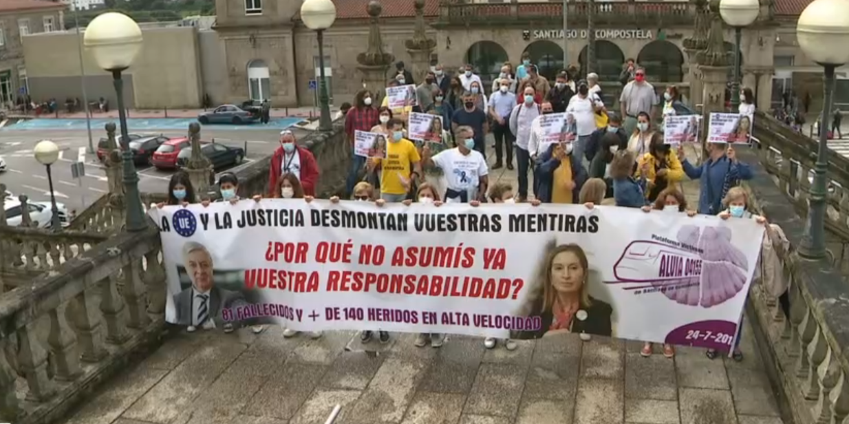 En el octavo aniversario del accidente del tren Alvia en la parroquia de Angrois (Santiago de Compostela), que dejó 80 muertes y más de 140 heridos, la Plataforma Víctimas Alvia 04155 se ha concentrado en el lugar de la tragedia para exigir «justicia y verdad». La manifestación ha comenzado este sábado a las 11:30 horas en la estación de ferrocarril de Santiago y han recorrido las calles de la capital de Galicia entre consignas como «Blanco, Pastor, nunca dejaréis de oír nuestra voz». Siguen pidiendo justicia y una investigación independiente.
