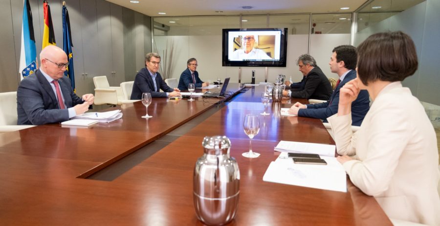 Feijóo mantivo un encontro presencial cos representantes de PPdeG -Pedro Puy-, PSdeG -Gonzalo Caballero-, BNG -Ana Pontón- e Podemos -Antón Gómez-Reino; no que tamén estiveron a través de videoconferencia os representantes de En Marea -Francisco Casal- e de Ciudadanos –Beatriz Pino-, e que se prolongou por dúas horas e media.