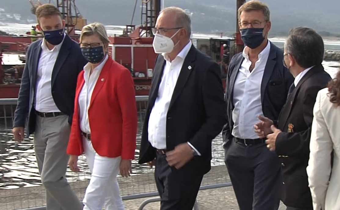 Feijóo estuvo acompañado de la conselleira del Mar, Rosa Quintana y del alcalde de Laxe, José Luis Pérez Añón, entre otros cargos de la Xunta y diferentes personalidades. Tras una visita por la lonja, Feijóo informó de que la Xunta acaba de contratar 30 estudios de dragado en otros tantos puertos de la comunidad.