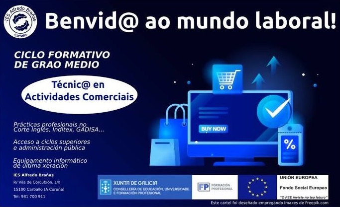 Este lunes 26 de julio finaliza el plazo de matrícula en los ciclos formativos con plazas liberadas. La matrícula debe realizarse en el propio centro donde se quieran cursar los estudios. En el IES Alfredo Brañas de Carballo había plazas disponibles en el Ciclo Medio de Actividades Comerciales. Para realizar la matrícula es preciso poseer el título de ESO o equivalente.