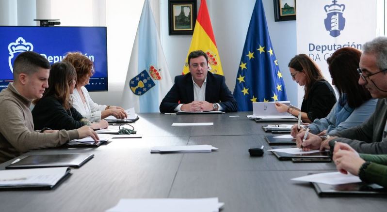 O presidente da Deputación da Coruña, Valentín González Formoso, xunto coa deputada de Industria, Emprego e Política Demográfica, Rosa Ana García; e persoal técnico Plan de Emprego Local (PEL) da Deputación, reuniuse cos presidentes/as e vicepresidentes/as da Federación de Autónomos de Galicia (FEAGA), da Asociación Intersectorial e Interterritorial de Autónomos e Pequenas Empresas de Galicia (APE), da Asociación Coruñesa de Transportes Discrecionais e Especiais (ACOTRADES) e da Federación Galega de Transporte de Mercadorías (FEGATRAMER).