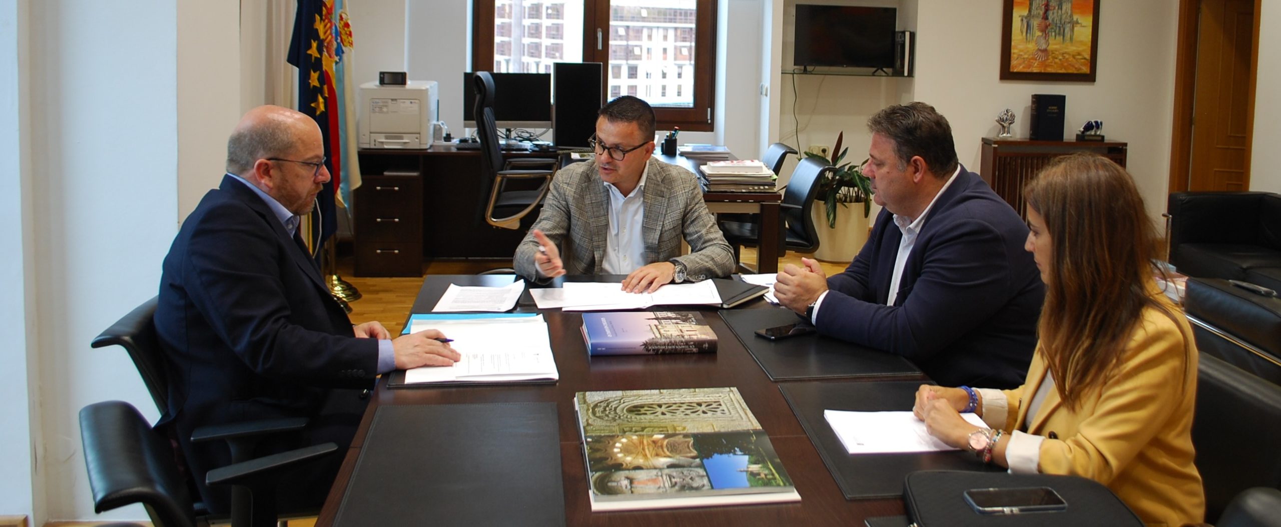 El alcalde de Frades, Roberto Rey Martínez y el teniente de alcalde, Manuel Ferreiro Marzoa, se reunieron con el conselleiro del Medio Rural, José González y la directora general de la Agencia Gallega de Desarrollo Rural, Inés Santé, para tratar varios temas muy interesantes para el presente y futuro de las explotaciones ganaderas y del sector forestal del Ayuntamiento. De hecho se alcanzó un compromiso de evaluación del estado de dos puentes y en caso de necesitarlo su posterior acondicionamiento. Los puentes son la que une el Ayuntamiento de Frades con el de Ordes y a otra con el de Boimorto.