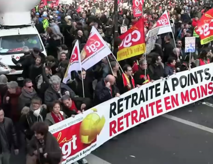 Novo día de mobilizacións en Francia contra a reforma das pensións que prepara o goberno de Emmanuel Macron. Por primeira vez nunha década, os cinco principais sindicatos franceses sairon xuntos á rúa. Segundo o ministerio do Interior, 615.000 persoas se manifestaron en todo o país, cifra que os sindicatos elevan a un millón oitocentas mil. Ademais, continuaron por decimoterceiro día os paros nos transportes e na educación.