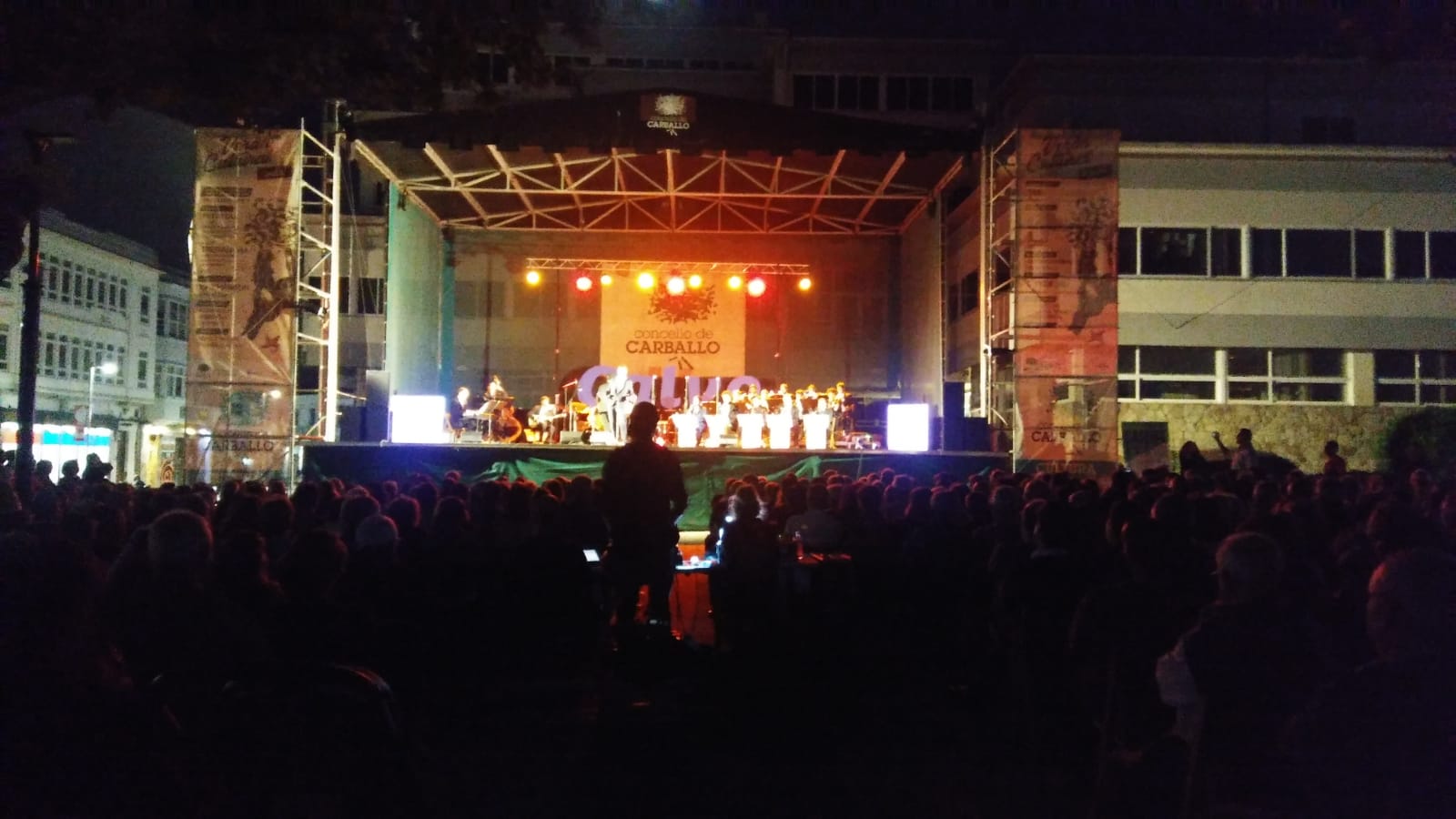 Este viernes 9 de agosto llegó una de las citas estrella incluidas en el programa del verán cultural del ayuntamiento de Carballo, un concierto de la Orquesta Garufa Blue Devils Band & Sito Sedes. Se trató de una actuación patrocinada por la Fundación Luis Calvo Sanz, en una plaza del ayuntamiento abarrotada de público, con una orquesta que revisó los grandes clásicos del swing al ritmo de una de las voces gallegas más reconocidas, Sito Sedes.
