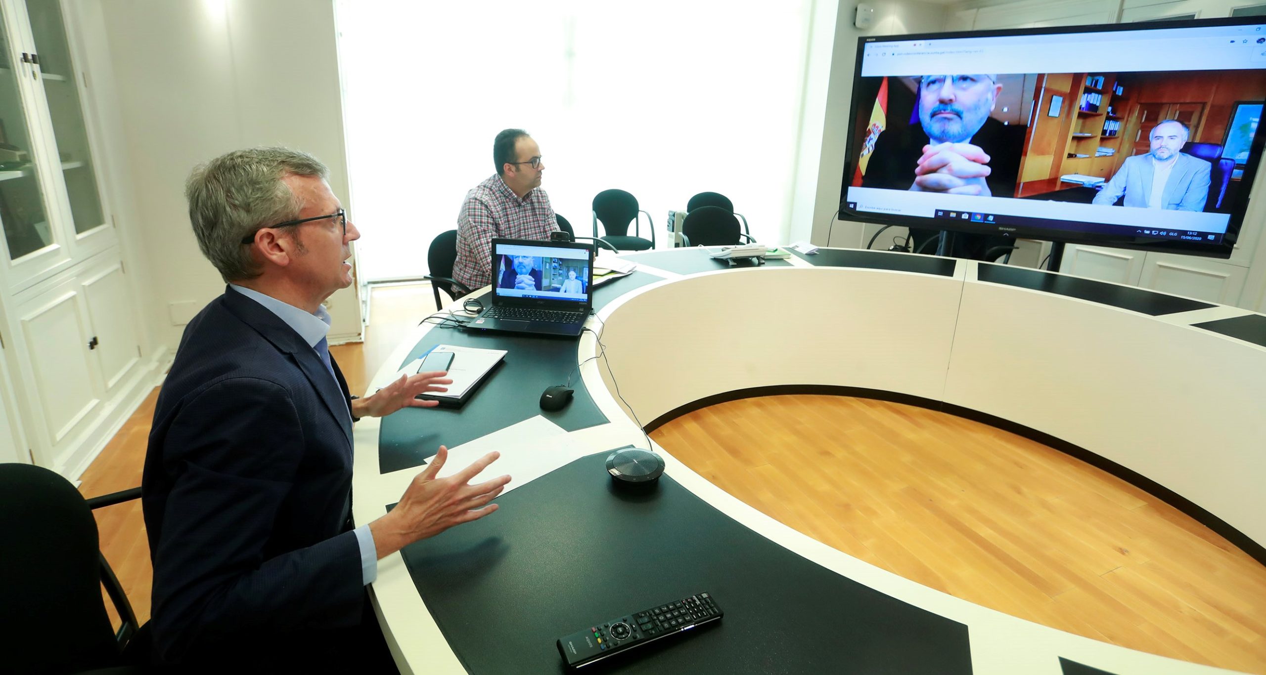 O vicepresidente da Xunta, Alfonso Rueda, mantén unha reunión por videoconferencia co delegado do Goberno en Galicia, Javier Losada.