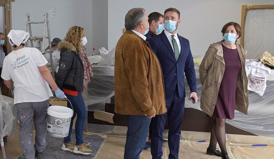 O delegado territorial comprobou o traballo de pintura industrial que están levando a cabo neste momento os alumnos nos centro sociocultural de Paiosaco.