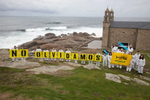 Vinte anos despois de que o petroleiro partísese en dous fronte a Galicia, o voluntariado da organización volveu a Muxía cunha mensaxe clara: “non esquecemos”. Por este motivo, máis dunha vintena de voluntarios e voluntarias de Greenpeace, regresaron ao lugar coa intención de homenaxear ás decenas de miles de persoas que, procedentes de moitos lugares do Estado español e do mundo, se desprazaron a Galicia aqueles meses para axudar a mitigar o maior desastre ambiental da nosa historia. Ao redor de 70.000 persoas voluntarias pasaron por Muxía nos meses posteriores á catástrofe, un exemplo conmovedor do poder da sociedade civil. Greenpeace lembra que aínda hoxe segue existindo risco de que se produza outro Prestige, pois millóns de toneladas de petróleo pasan fronte á Costa da Morte cada ano.