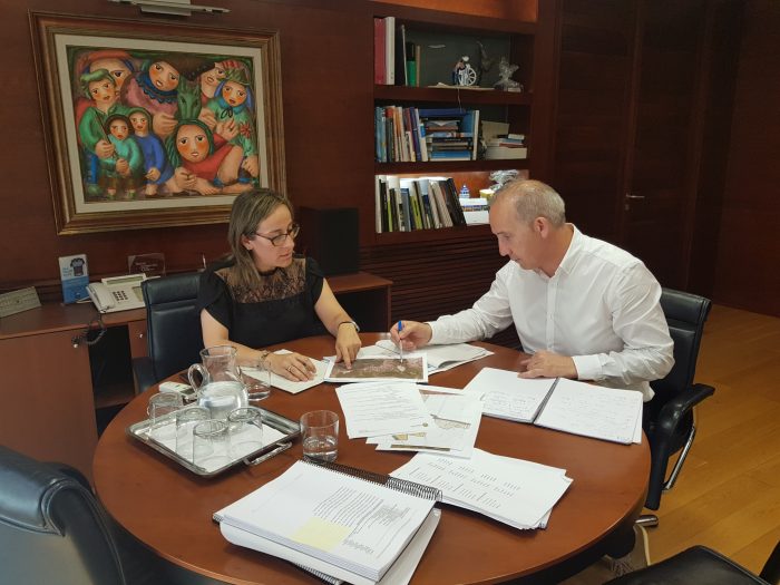 A conselleira de Infraestruturas e Mobilidade, Ethel Vázquez, mantivo unha xuntanza co alcalde de Coristanco, Juan García Pose, na que lle trasladou o compromiso da Xunta de estender a senda peonil da estrada AC-552 ata as inmediacións do centro comercial.