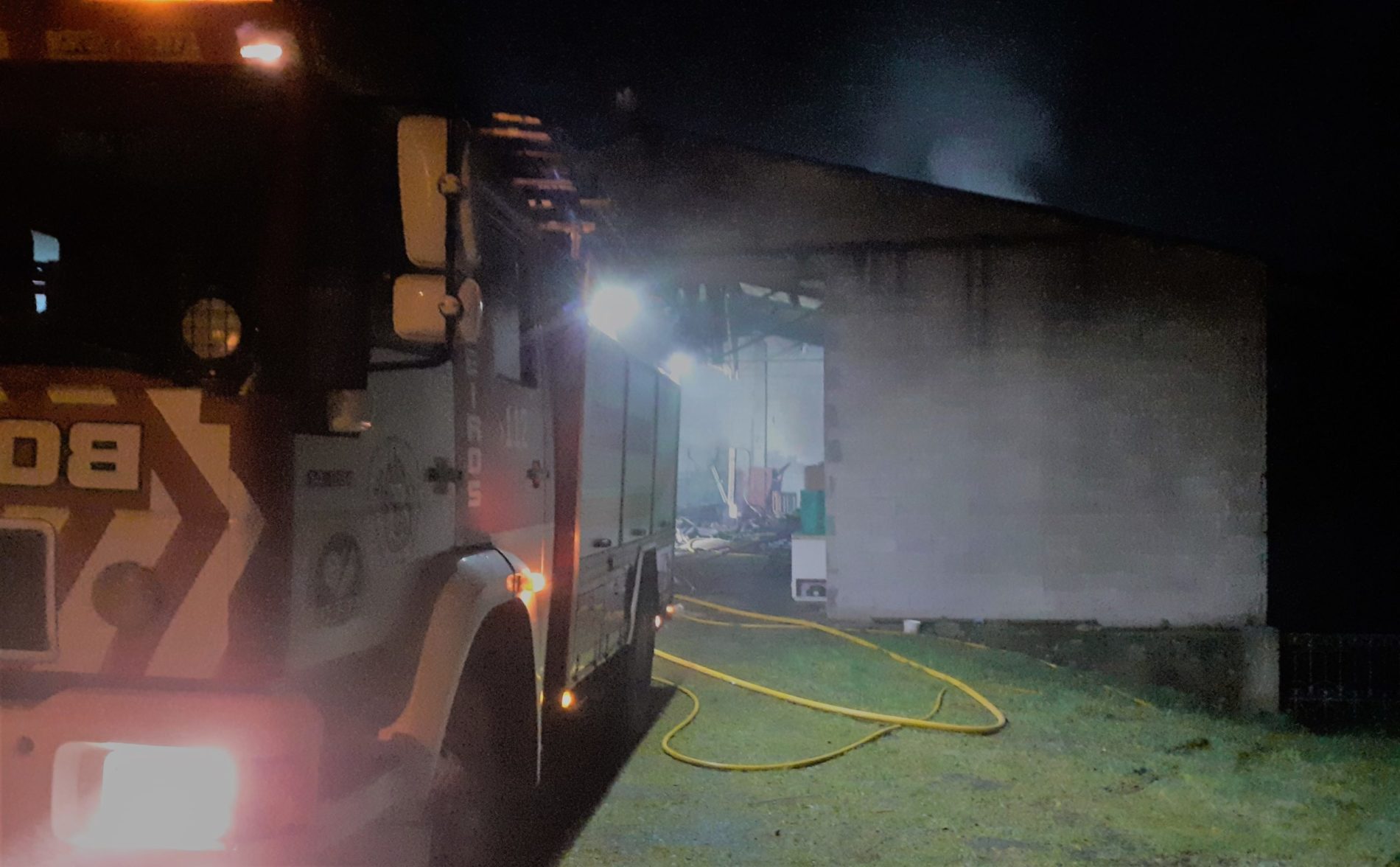Cando os servizos de extinción chegaron ao punto comprobaron que o GES de Ponteceso retirara varios vehículos que se atopaban no interior do alpendre sin que se viran afectados. O incendio orixinouse nunha pila de leña situada ao fondo da nave. O lume afectou sobre todo a unha parte da cuberta que finalmente caeu. Afortunadamente ninguén resultou ferido.