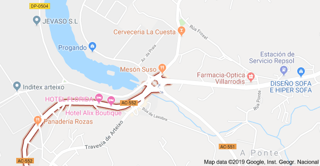 La actuación se inicia en el punto kilométrico 8+850, antes de la intersección con la calle Teresa De Calcuta, y finaliza en el 9+760, en la intersección con la calle Reconquista, antes de la glorieta con la Avenida da Ponte. Los trabajos consistirán en la ampliación de la plataforma de la vía por su margen derecho para dotar a la carretera en sentido Fisterra de un segundo carril mas el correspondiente arcén o zona de aparcamiento.
