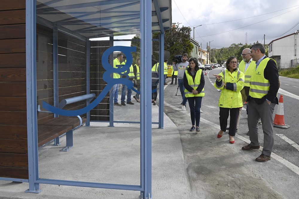A conselleira de Infraestruturas e Mobilidade, Ethel Vázquez, xunto co delegado territorial da Coruña, Ovidio Rodeiro, supervisou este luns a instalación da primeira marquesiña rural en Vilaseco, en Vimianzo, que se continuarán colocando nas catro provincias galegas para acadar un transporte público que responda ás necesidades dos cidadáns.