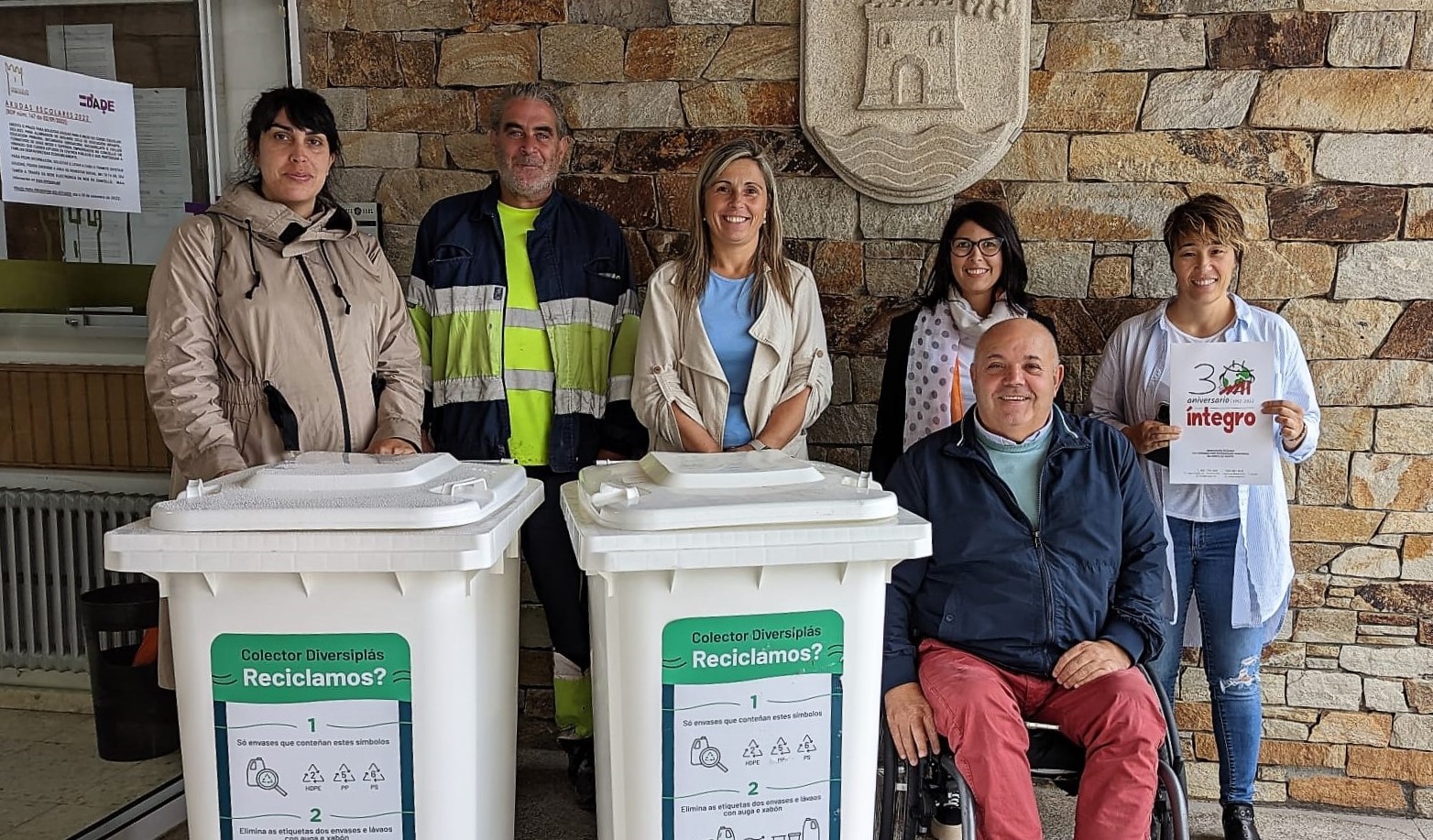 Nas últimas semanas, moitos municipios, confrarías e asociacións da Costa da Morte, integradas na Rede de Entidades Colaboradoras Diversiplás, recibiron xa os novos colectores de plástico da man do presidente de Íntegro, Adolfo López Baña, e a directora do centro Noelia Barreira. Concellos como o de A Laracha, Cabana, Malpica, Vimianzo e Muxía contan xa con dous destes contedores brancos, destinados exclusivamente á recollida selectiva de plásticos e situados en zonas accesibles e de maior tránsito peonil. Así mesmo, tamén dispoñen deles algunhas entidades do sector pesqueiro como a Confraría de Pescadores de Caión (Laracha), a Agrupación de Mariscadoras do Anllóns (Cabana) e a Confraría Virxe da Barca de Muxía, coa finalidade de mellorar as boas prácticas na súa actividade e reducir a presenza de plásticos no mar.