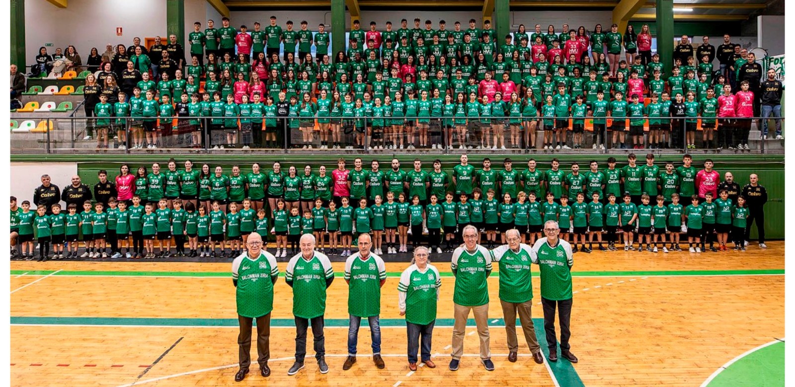 El pasado sábado la familia de las Escuelas Balonmano Xiria vivió una tarde cargada de emociones en el Pabellón Vila de Noia. La jornada comenzó con el partido y victoria del Calvo Xiria senior femenino frente el Coreti Lalín y se cerró con el emocionante encuentro senior masculino entre el Calvo Xiria y el Bm. Ribeiro que finalizó con reparto de puntos. Entre ambos partidos, tuvo lugar la foto de familia de los 25 equipos que forman parte del club en esta temporada 2023/2024. La foto de familia fue el momento perfecto para hacer el merecido homenaje a algunos de los fundadores de la Asociación Deportiva Xiria, que en la presente temporada cumple 40 años. Pasado y presente del balonmano carballés unidos en un momento inolvidable. La actual directiva de las Escuelas Balonmano Xiria hizo entrega de la camiseta conmemorativa del 40 aniversario a los 6 fundadores presentes en el acto: José Luis Fernández Fernández, José Luis García Mendoza, José Antonio Andrade Sendón, María Gema Paz Bello, Carlos Puga Trigás, Francisco Javier Fieira Fuentes y Evencio Ferrero Rodríguez. Mención especial también para el resto de fundadores que no pudieron estar en el acto: Amadeo García Veiga y José Antonio Mariño Rey. Las semillas plantadas por estos valientes hace 40 años dieron sus frutos y hoy, la marca Xiria es todo un referente deportivo tanto a nivel autonómico como nacional. Las nuevas generaciones seguirán trabajando para que Escuelas Balonmano Xiria siga creciendo y siempre muy orgullosas de llevar el nombre de XIRIA en su maillot.