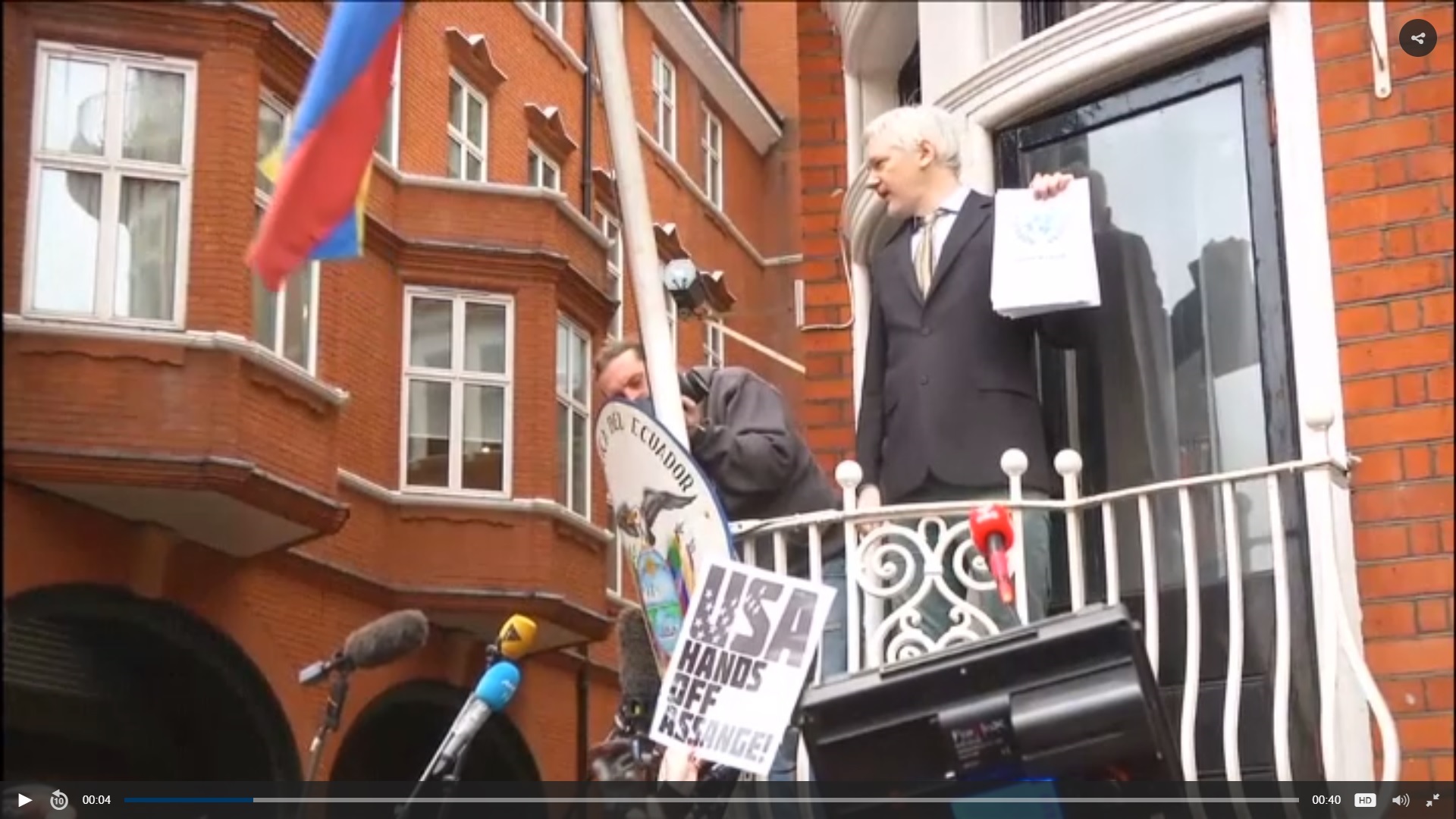 El presidente de Ecuador aseguró que le había solicitado a la Reino Unido la garantía de que Assange no sería extraditado a un país en el que pudiera ser torturado o condenado a muerte, como pasa en los Estados Unidos (EEUU), a lo que Reino Unido habría respondido afirmativamente por escrito. De ser extraditado a EEUU, el fundador de Wikileaks tendría que rendir cuentas por las filtracines de su organización sobre las guerras de Afganistán e Irak, así como de los correos electrónicos de la Secretaría del Estado.