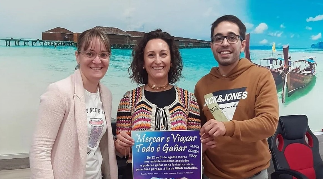 En la mañana de este lunes el presidente de la Asociación de Empresarios de Santa Comba, Alberto Romar, hizo entrega del premio de la campaña “comprar y viajar, todo es ganar”, celebrada del 22 a 31 de agosto y en la cual participaron 50 comercios asociados. El premio recayó en Inmaculada que compró en el comercio nicrariense Lúa Moda, en el cual su propietaria, Victoria García se mostró muy ilusionada con el hecho de repartir este “premiazo” entre sus clientes. La afortunada fue Macu, que disfrutará de un viaje a Gran Canaria en régimen de media pensión en hotel de 4 estrellas durante 7 jornadas. El acto de entrega se llevó a cabo en la tienda asociada Viajes Amarelle, local donde se realizó la compra del viaje. Desde la Asociación de Empresarios de Santa Comba agradecen la alta participación en esta campaña, la cual dinamiza el pequeño comercio incentivando las compras en el mismo