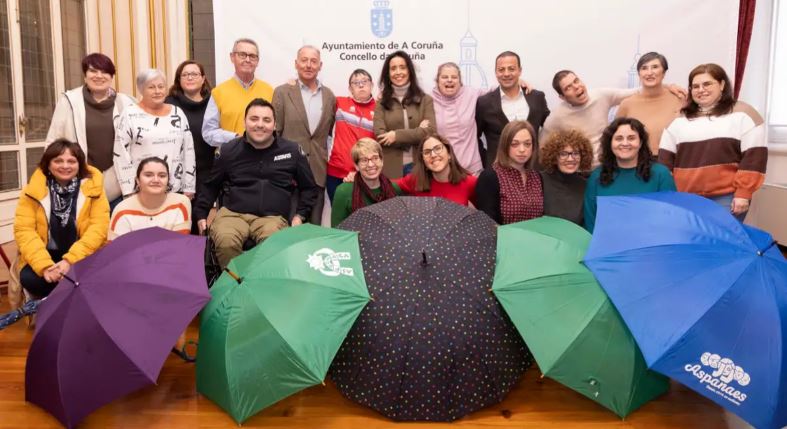La concejala del área de Bienestar Social, Yoya Neira, presentó en el Palacio de María Pita la octava edición de ‘Bajo el mismo paraguas’, el evento que reunirá a entidades sociales en la defensa de los derechos de las personas con diversidad funcional de toda Galicia el próximo domingo 3 de diciembre a las 12.00 horas en la explanada del Parrote. La concejala estuvo acompañada por Ricardo Iglesias, gerente de ASPACE, en representación de las 33 entidades que participarán en este acto festivo y reivindicativo.