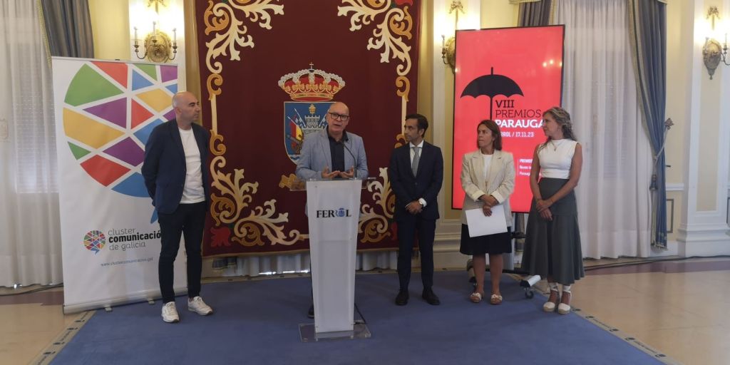 El ayuntamiento de Ferrol acogió la presentación de la VIII edición de la Gala de los premios Paraugas organizada por el Cluster de la comunicación de Galicia y que se va a celebrar el día 17 de noviembre en el Teatro Jofre de Ferrol