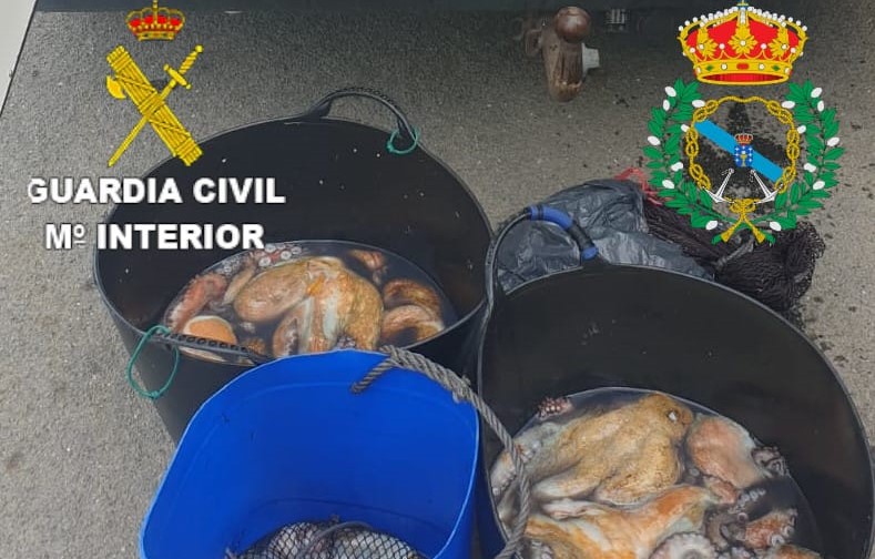 Agentes del Servicio Marítimo Provincial de la Guardia Civil de A Coruña, en colaboración con el Servizo de Gardacostas de la Xunta de Galicia, aprehendieron 99,650 Kg de pulpo en el puerto de Camariñas.
