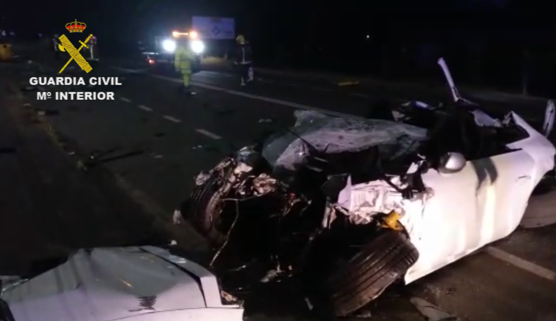 El siniestro consistió en una salida de vía, donde el vehículo pudo recorrer sin control unos 160 metros hasta colisionar contra una glorieta, dejando esparcidos por la carretera el motor y la carrocería. Los dos ocupantes, de 25 y 23 años resultaron heridos, sufriendo las mayores heridas el que ocupaba el lugar del copiloto, por lo que tuvo que ser trasladado en ambulancia medicalizada.