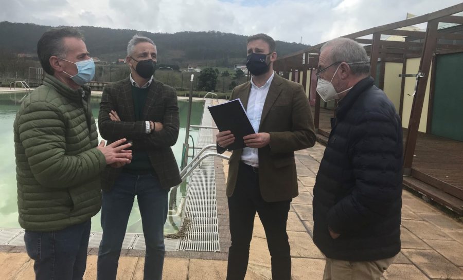 El delegado de la Xunta en A Coruña, Gonzalo Trenor, acompañado por el alcalde de Laxe, José Luis Pérez, visitaron la piscina municipal descubierta en el Cabo da Area en la que la Xunta invertirá 20.000 euros para llevar a cabo mejoras y adecuación de sus instalaciones.