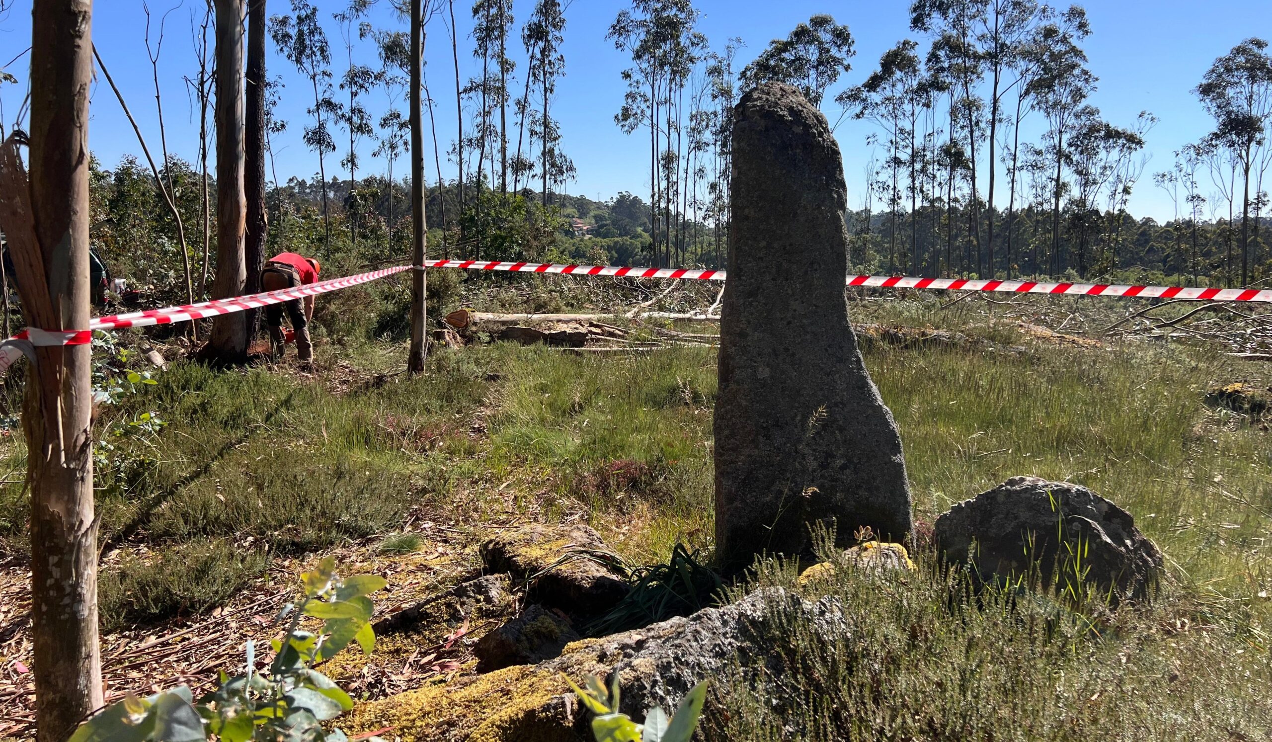 Os traballos, que realiza o Concello da Laracha, baixo control arqueolóxico, consisten na roza da vexetación e limpeza do contorno coa fin de preservar a visibilidade do menhir e asegurar a súa correcta integración paisaxística.
