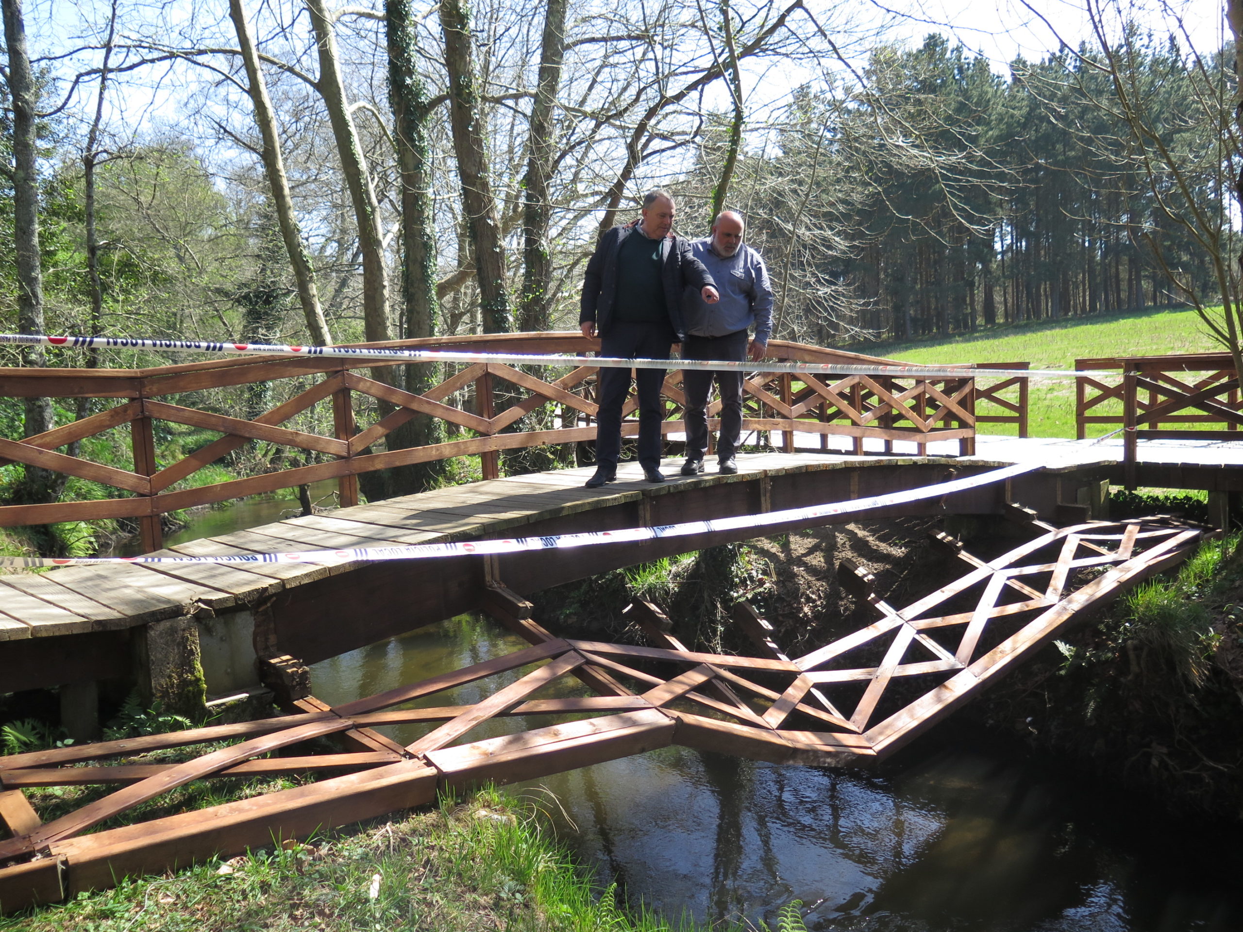 El alcalde, José Manuel López Varela, y el teniente alcalde, José Ramón Martínez Barbeito, comprobaron en persona el estado de la pasarela en todo el tramo. Tras una primera valoración técnica, se estima que el coste de la reparación superará los 6.000 euros.