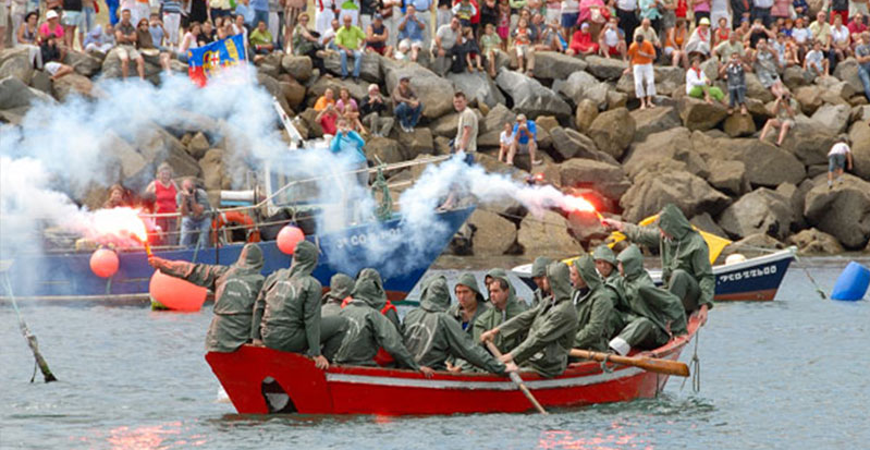 Seguidamente los barcos, engalanados con flores y banderas, salen en procesión por la ría, detrás del barco que cada año tenga el honor de portar la imagen de la Virgen. En el transcurso de esta procesión marítima, se tiran flores al agua para rememorar a los marineros muertos en el mar.