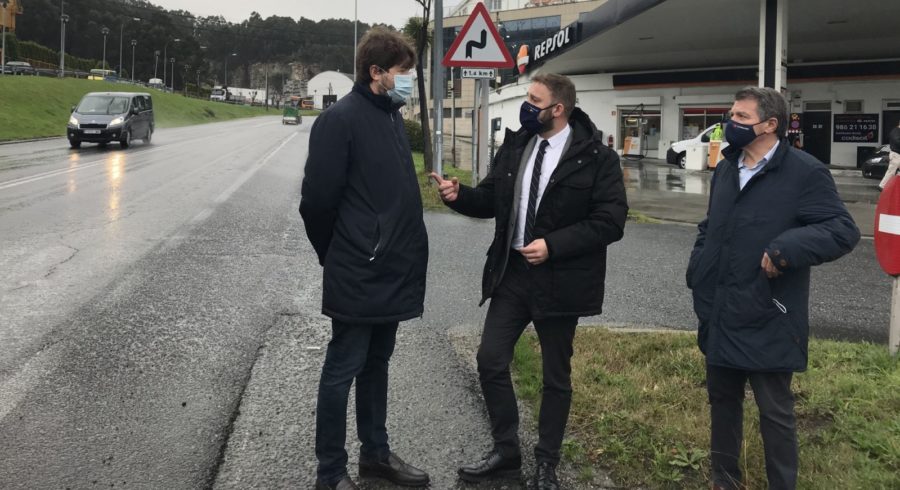 O delegado territorial da Xunta na Coruña, Gonzalo Trenor, acompañado polo alcalde de Arteixo, Carlos Calvelo, visitou a zona na que se van levar a cabo as obras de mellora da seguridade viaria no treito de concentración de accidentes da estrada autonómica AC-552, ao seu paso por este concello.