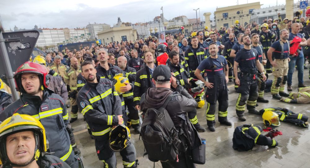 Cerca de 250 bomberos de los 24 parques comarcales de Galicia se han concentrado este viernes frente a la Diputación Provincial de A Coruña. Reclaman más medios, personal y salario, además de instar a las administraciones a sentarse a negociar. Los agentes comarcales gallegos mantienen una huelga desde el pasado mes de junio, con la que están dispuestos a seguir. «Estamos dispuestos a hacer lo que sea para que se nos paguen lo que merecemos y se nos brinden las condiciones de trabajo y seguridad que nos corresponden», han dicho. El presidente del comité de huelga, Ángel Moldes, ha apelado directamente a Xunta y Diputaciones para continuar con la mesa de diálogo. Los agentes han achacado tanto a la Xunta como a las Diputaciones que hablen de diálogo cuando únicamente ofrecen reuniones mensuales. Las pretensiones de los agentes es tener encuentros semanales para retomar la mesa de negociación y poder desbloquear el conflicto.