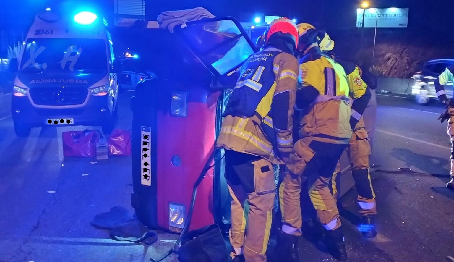 A través de la llamada de un particular, realizada pasadas las 7 de la mañana de este lunes, el 112 Galicia tuvo conocimiento de un siniestro en la Avenida de Alfonso Molina, en A Coruña. El alertador informaba de una colisión tras la que uno de los vehículos implicados había finalizado volcado. Desde el 112 se coordinó la acción de Urgencias Sanitarias de Galicia-061, de los Bomberos y de la Policía Local de A Coruña, de la Guardia Civil de Tráfico y de los servicios de mantenimiento de las carreteras. Así pues, el personal de los Bomberos, que se desplazó al punto con celeridad, tuvo que realizar labores de excarcelación a fin de retirar a la persona herida del vehículo, quien sería, finalmente, trasladada a un centro hospitalario por el personal de los servicios sanitarios, que habían sido movilizados a bordo de una ambulancia. Una vez finalizada la intervención de los equipos de emergencias, los operarios de mantenimiento de las carreteras se encargaron de la limpieza del asfalto para restablecer la circulación lo antes posible.