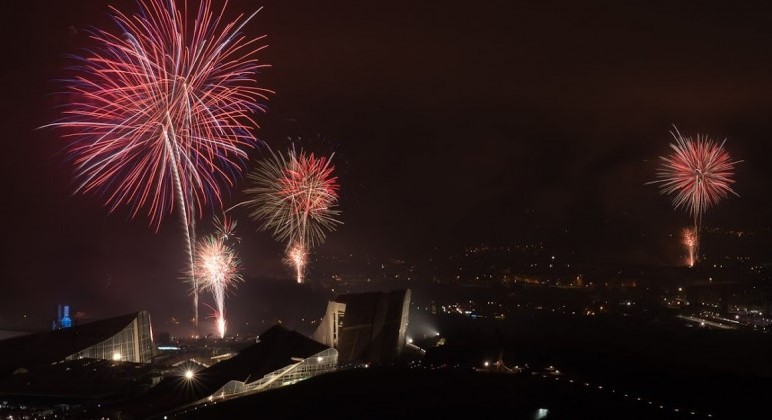 Los Fuegos del Apóstol se pudieron ver de nuevo este sábado desde cualquier punto de Santiago porque se lanzaron desde cinco localizaciones diferentes. Son puntos altos de la ciudad en los que ya estaban preparados los 500 kilos de material pirotécnico unas horas antes. Fueron dos mil disparos desde cada emplazamiento para un espectáculo que prometía mucho ritmo y que no defraudó.