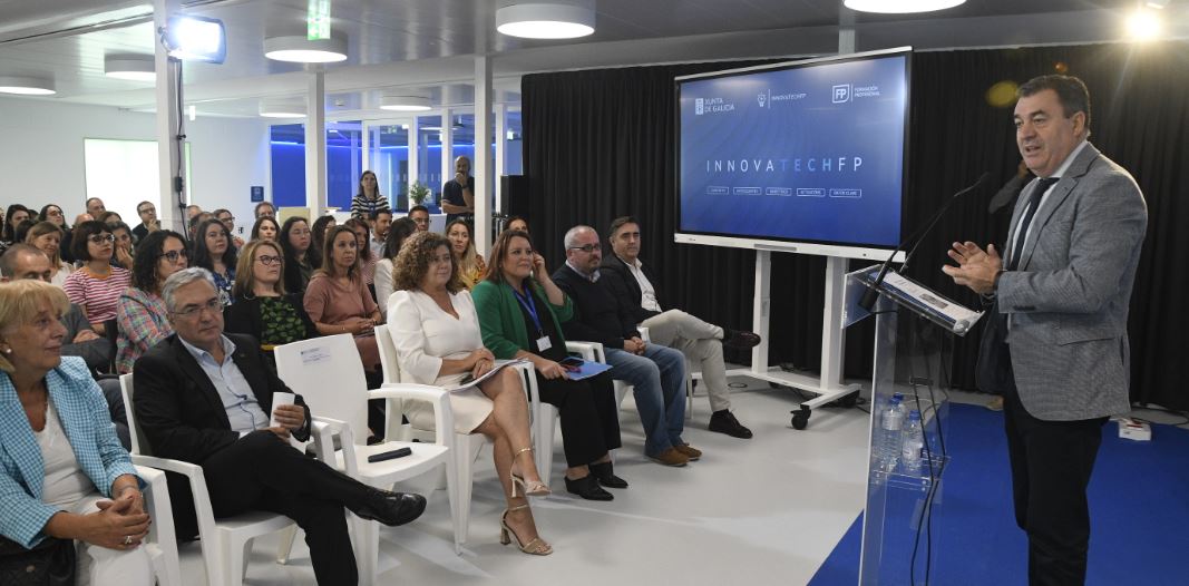Así lo aseguró el conselleiro de Cultura, Educación, FP y Universidades, Román Rodríguez en el Centro de Innovación de la FP Eduardo Barreiros en Ourense, donde presentó la puesta en macha de esta novedosa acción de la Consellería que movilizará más de 2.000 alumnos y 400 profesores de 100 centros de FP durante el curso 2023-24 y 2024-25, y supondrá una inversión de 1,5M€ en este período. Según Román Rodríguez, que estuvo acompañado del presidente de la Diputación de Ourense, Luis Menor, y de la directora general de FP, Eugenia Pérez, el contexto de transformación social y tecnológica “exige una profesionalización inmediata de las competencias digitales”, de ahí a la necesidad de “ahondar en sus posibilidades y ofrecer un valor añadido que marque la diferencia”.