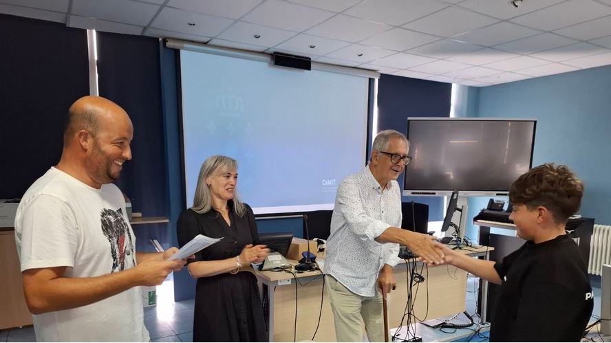 Case medio cento de nenas e nenos de nove a dezasete anos de idade participaron ao longo do verán nos campamentos dixitais organizados pola Concellaría de Innovación en colaboración coa Fundación Esplai. Este mércores rematou o cuarto. O alcalde, Evencio Ferrero; o concelleiro de Innovación, Iván Andrade, e a concelleira de Educación, Mar Eirís, ademais da técnica responsable da Aula CeMIT, Milagros Antelo, fixeron entrega dos diplomas á rapazada participante nesta última quenda.