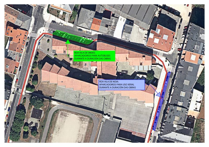 Segundo a planificación establecida, os autobuses terán reservado un espazo na rúa Vila de Ordes, na zona dos aparcamentos en batería, nas horas de entrada e saída do colexio. O resto do día seguirá sendo, como ata agora, de uso libre. Mentres, os turismos poderán aparcar libremente na rúa Vila de Noia.