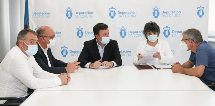 El presidente de la Diputación de A Coruña, Valentín González Formoso, y la alcaldesa de Moeche, Beatriz Bascoy, firmaron el convenio de colaboración para financiar las obras de rehabilitación y acondicionamiento de una nave en desuso en el recinto ferial municipal y urbanizar su entorno para transformarla en un centro de trabajo colaborativo orientado a la elaboración, transformación y venta de productos agroalimentarios. El centro, de carácter comarcal, dará servicio también a los ayuntamientos de San Sadurniño, Valdoviño y Cerdido, cuyos alcaldes Secundino García Casal, Alberto González y Benigno Galego estuvieron también presentes en el acto. La Diputación financiará el proyecto con una aportación del 66% del coste total.