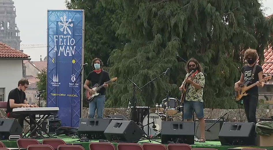 El festival de música compostelano “Feito a man” sobrevive a la pandemia y comienza una nueva edición. Con formato reducido, medidas de seguridad y bandas principalmente gallegas, lo más variado de la música resiste en Santiago para seguir siendo señal de identidad del verano compostelano. Nos obligan a estar sentados, separados, enmascarados. La pandemia mudó espacios, las calles, plazas y terrazas dejaron paso a un palco único: el cementerio del parque de Bonaval. De aquí al sábado habrá rock, funk, jazz, o folk en este tan especial «Feito a man».