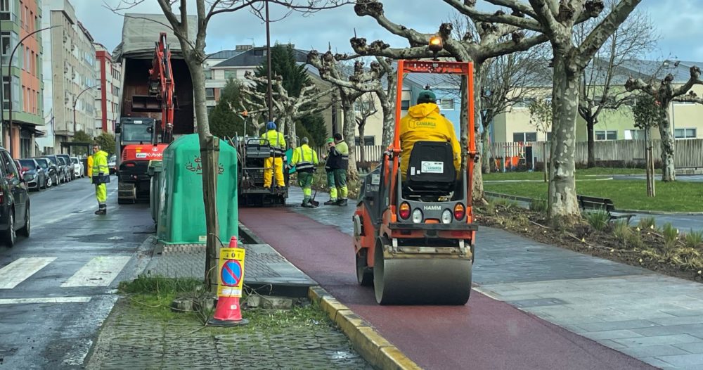 Os servizos técnicos optaron por un pavimento de media densidade, máis resistente que as pranchas plásticas anteriores, para evitar o deterioro da senda nas zonas de acceso a garaxes ou empresas, polas que transitan vehículos; pero que ao mesmo tempo reúne unhas características que facilitarán tamén o seu uso por persoas que camiñan ou corren.