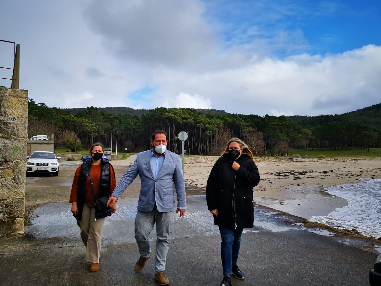 O goberno de Ponteceso visitou o lugar de Balarés para comprobar as obras da instalación dunha fosa séptica que mellorará a xestión dos residuos da cafetería da Deputación, dos baños públicos e da base de socorrismo.