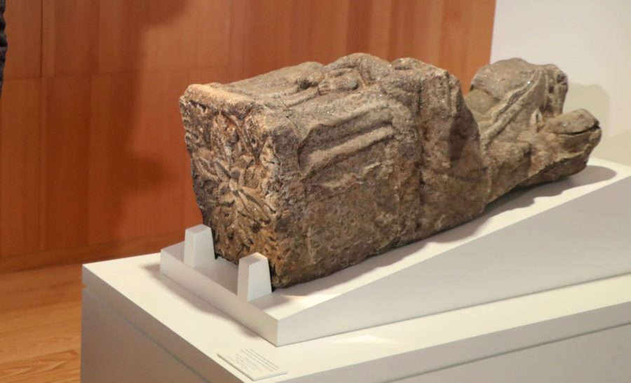 A escultura está tallada en catro das súas cinco faces e representa a unha Virxe entronizada co Neno. A ambas bandas da Virxe, sobre os seus ombreiros, descansas dous anxos suxeitando un botafumeiro ou incensario. Trátase dunha peza de case un metro de alto e os especialistas sinalan que responde ao modelo de Virxe da leite. En canto a súa autoría, o equipo de expertos implicado no proceso atribúe esta escultura a un taller ourensán de influencia burgalesa, responsable tamén da Virxe de Santa María de Salomé e do tímpano de San Fiz de Solovio, ambos en Santiago. Ademais, sitúan a súa cronoloxía a principios do século XIV.