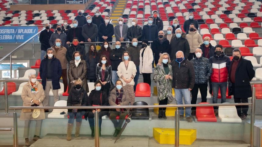 Acompañada do comisario da mostra, o xornalista Rubén Ventureira, a rexedora recordou que o pazo foi pensado polo grande arquitecto coruñés como unha rede de cordas pechada para lle dar cabida ás bancadas e aos distintos espazos que alberga no interior. A alcaldesa sinalou que aínda que Rey Pedreira escolleu o gris do formigón armado que tanto lle gustaba, «todas e todos sabemos que o corazón deste pavillón é verdibranco e tamén laranxa». Indicou que se conformou como un pazo para os deportes e que cumpriu con esa premisa «desde o momento en que o Concello decidiu darlles acubillo nel ás escolas deportivas municipais».