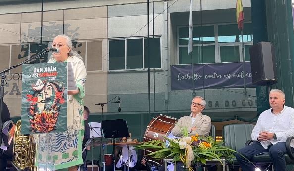 A Praza do Concello de Carballo quedou pequena á última hora deste mércores para asistir ao pregón das Festas do San Xoán e que este ano tivo como protagonista á ex profesora o IES Alfredo Brañas, Gema Paz Bello.
