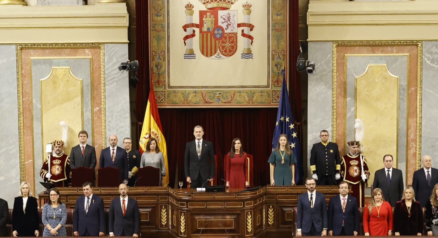 Ante deputados e senadores, entre os que non estaban os representantes de ERC, EH Bildu e BNG, o xefe do Estado puxo en valor este mércores a vixencia da Carta Magna como “marco democrático” e que recolle toda unha serie de valores que “non están ancorados no pasado e que deben proxectarse permanentemente cara ao futuro”. Felipe VI, acompañado pola Raíña Letizia e a Princesa de Asturias, abriu a décimo quinta lexislatura e felicitou a Pedro Sánchez pola súa elección como presidente “ao obter a confianza da Cámara”. E fixo un chamamento a que os mozos reciban “unha España cohesionada e unida na que poidan desenvolver as súas vidas e proxectar as súas ilusións”. O Rei Felipe VI reivindicou que a defensa da Constitución non supón “mirar atrás con nostalxia” senón reafirmar o logro que supuxo para a convivencia democrática de España.